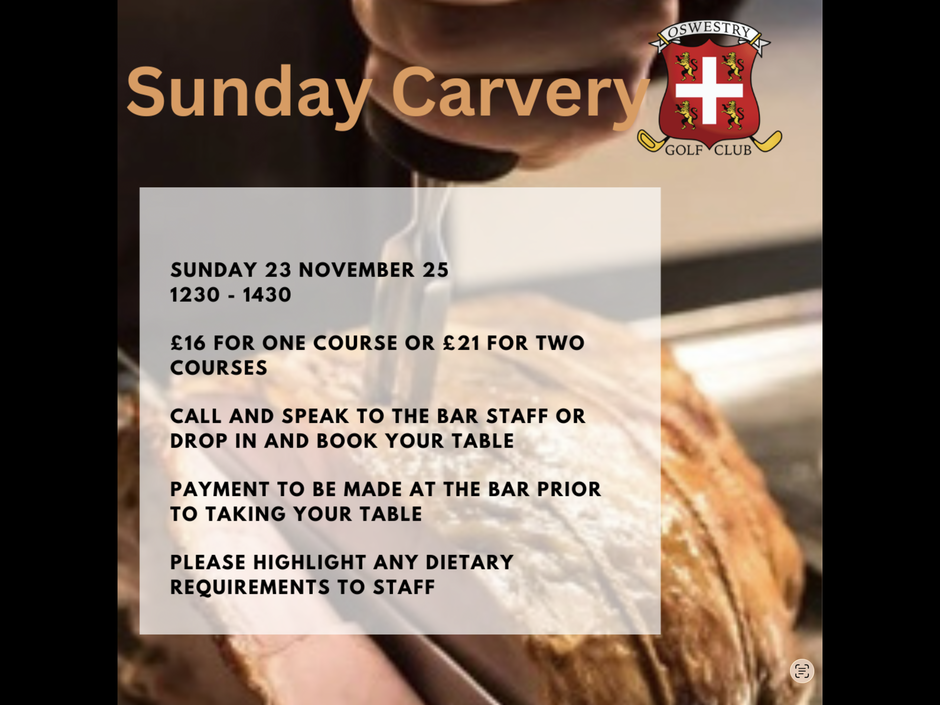 A reminder to all if you wish to reserve places for the Sunday Carvery - 23 Nov 25.